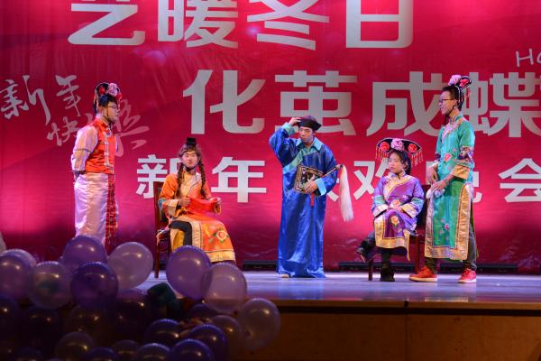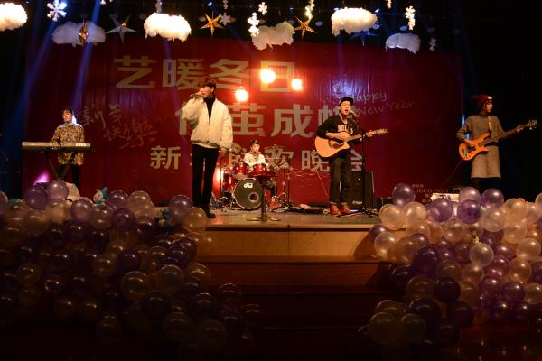 2015年12月23晚上六点由化工学院与艺术学院联合举办的“艺暖冬日,化茧成蝶”元旦晚会在李惠利大剧院隆重举行。参加本次晚会分别有化工学院党总支书记徐帆老师,艺术学院直属党支部副书记陈之顺老师,化工学院、艺术学院分团委书记陈凯华老师、屠琳琳老师,建工学院、国际学院分团委书记周思勇老师、吴艳艳老师。继往开来迎新岁,举金杯春满万户,与时俱进贺丰年,传笑语喜盈千家。 元旦晚会由第六公社拉开序幕。接下来,一首《青花瓷》唱响了远古的淡雅悠然地飘散江南的天空,轻柔的音韵婉转地流淌在沧桑的古镇。小品《上学游记》更是吸引了观众的眼球。梁珂同学给同学们带来的一曲《宿敌》则是更多的是温情和感动。美妙的歌声总让人联想到童话和梦想,艺术3152班的同学为我们带来有趣的舞台剧《新编灰姑娘》,将观众引领进一个诙谐幽默的世界,其表演形式和新颖大胆的角色反串都别出心裁,博得了在场老师和观众的连连叫好。
