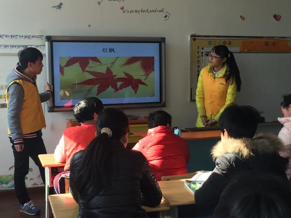 图为:志愿者正在教小朋友画画 下午三点半左右,志愿者们在孩子们的告别声中结束了此次志愿者阳光活动,每个人脸上都洋溢着快乐的笑容。此次的志愿者活动,在阳光中落下帷幕,志愿者们都收获良多,他们表示感谢能有这样的机会,让他们认识了一群天真可爱的孩子们。愿更多的人加入到志愿者行列当中,为更多地方带去欢乐。 工商学院 徐薇/文 崔丹露/摄