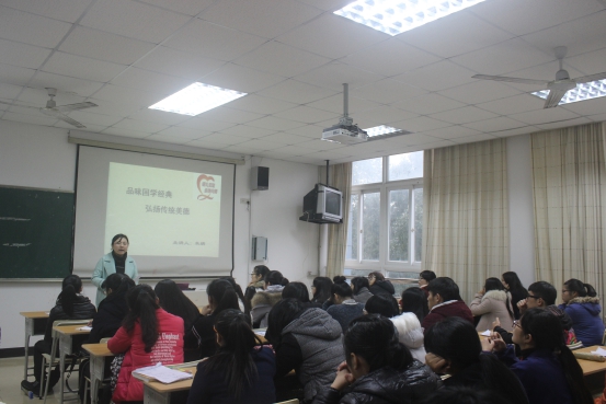 201教室,国际学院分院党校开课了,此次开课的主要内容是国学与孝道。这节课由国际学院分团委书记朱娟老师讲授,参加的有作为预备党员的各位大一新干事们。