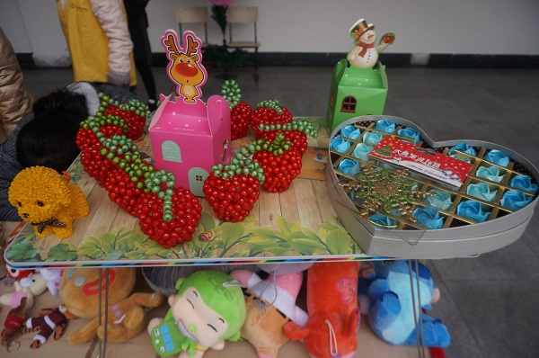 志愿者们早早的就来到食堂门口摆开桌子,放上礼品,拉起横幅,经过几个小时的辛苦准备摆好摊位后,志愿者们一个个热情的招呼过来看看爱心义卖。