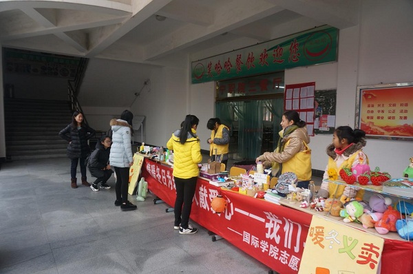 12月23日至25日中午,宁波职业技术学院国际学院的志愿者部门在食堂门口,正式开始了为期三天的“暖冬为环卫工人献爱心”大型义卖活动。