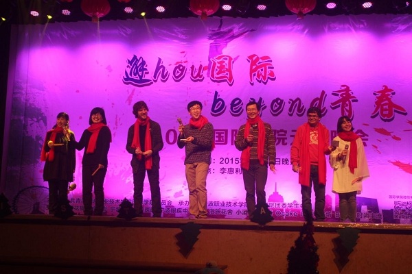 2016的到来,国际学院 “邂hou国际,beyond青春”主题的2016元旦晚会在2015年12月25日于李惠利大剧院隆重举行。晚会特邀国际学院院长杨林生、党总支书记袁建萍、副院长吴安萍和卢杭央等老师嘉宾,以及诚邀赞助商宁波眼病中心医院社服部郑泉峰主任和宁波眼病中心医院社服部企划科郭业荣副主任临现场观看晚会。