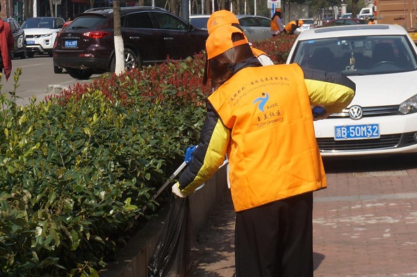 31名志愿者与社区工作人员共同努力改善社区环境。31名志愿者分成3组由社区工作人员带领去往3个地方进行卫生打扫活动。一组人员对社区花坛和街道的垃圾进行清理,经过半个多小时努力,小区变得卫生整洁。