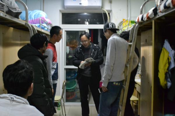 晚上七点,我分院院长董鸿安老师来到15号楼进行检查,在检查过程中,他对部分有问题的寝室提出了建议,也对情况良好的寝室进行了表扬,同时细心提醒同学们要加强宿舍卫生管理,保持寝室卫生,保证用电安全,加强个人防范意识,防止发生意外事故,并期望新学期中同学们能够规划好学习和生活。董院长的到来受到了同学们欢迎,也加强了领导与同学之间的沟通。
