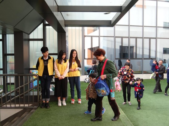 时间总是过的很快,快乐的事情总是不长久,孩子们要放学。楼梯两边的护栏间,志愿者们带着开心的笑容护送那些拉着爸爸妈妈的手,挥着小手的孩子离开!