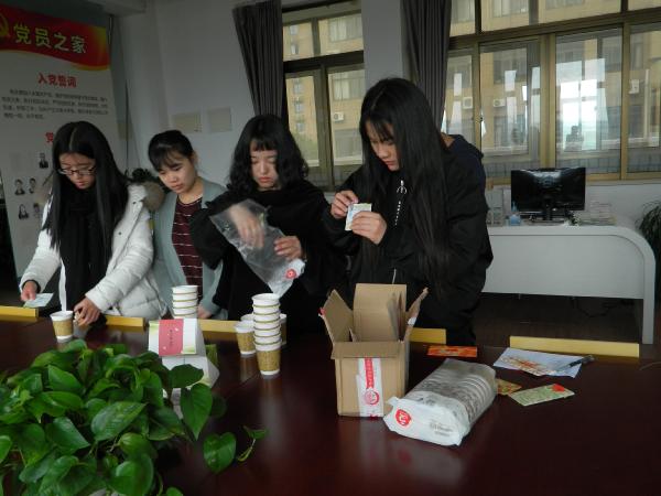 中午时分,学生干事便在团委办公室里忙碌起来,拿出精心准备好的贺卡,泡上一杯杯满怀恩情的茶。随后,干事们怀着激动的心情走进老师办公室,深情地对每一位女老师说“老师,您辛苦了!祝您节日快乐!”。老师对这突然到来的祝福感到既惊喜又感动,同时也对同学们的关心表示了感谢。随后。学生代表们又来到了宿管阿姨处,祝福阿姨节日快乐。