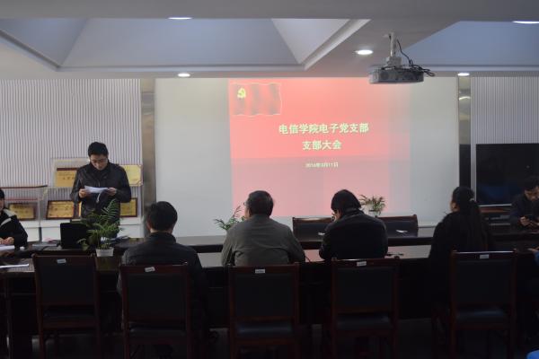 2016年3月11中午十二点四十,电信学院电子党支部在党员之家进行了入党积极分子转预备党员的会议,讨论表决入党积极分子邵宁明、黄姜涛等四位同志转预备党员的事宜。