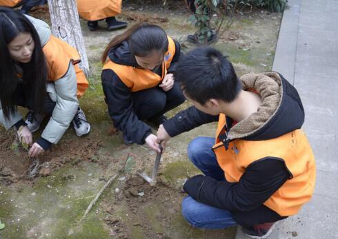 2016年3月11日下午,宁职院艺术学院的志愿者们来到玉兰社区,为社区种植树苗。周五13:15艺术学院的志愿者们,共25人,在新锐门口集合。13:30集合完毕,大约走了30分钟,我们到达了玉兰社区。社区负责人为我们分发衣服,并交给我们种树的工具,并手把手的教我们植树。