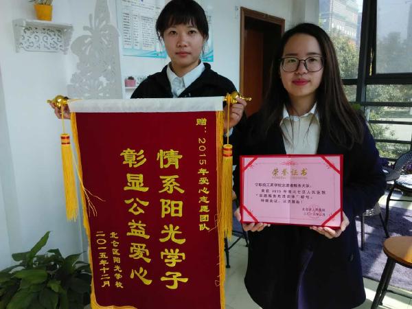 图为:来自北仑阳光学校的致谢锦旗