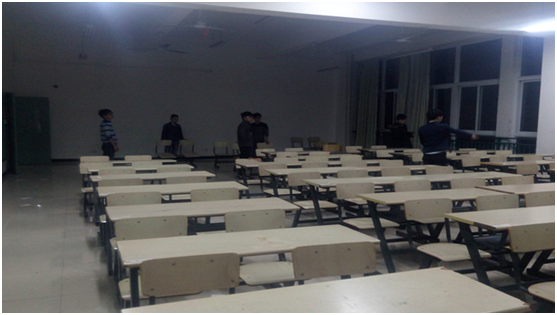 一些干事们也响应上级的号召,抛开了手中在忙的事物,不辞辛苦的将各教室中一张张损坏的桌椅集中到了一个教室中,并对剩余完好的桌椅进行了排列整理,让教室变得更加的干净整洁。整个过程中没有人有任何的怨言,并互帮互助,都一心一意的为了海天学院的同学们能有一个良好的学习环境而努力着。