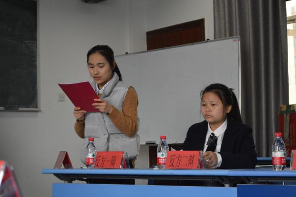 辩论赛正式开始后,主持人首先介绍了各位评委,然后说明辩论赛的规则,紧接着介绍双方辩手:正方辩手由电商3151班和乐造3150班组成的团队以及辩题为“文才比口才更重要”。反方辩手由电商3152班和工设3150班组成的团队辩题则为“口才比文才更重要”。
