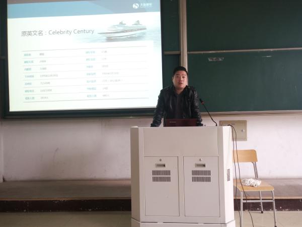 为促进学校对国际经济与贸易专业同学的实践教育,2016年3月22日中午12:20在明德楼103教室举行了社会实践教育讲座,本次讲座的宣讲人是飞扬旅行社邮轮线的产品经理陈程,参加《社会实践:企业产品销售实践》课程的同学积极参加了本次讲座。 陈程经理的到来受到了在场同学们的热烈欢迎,他以幽默风趣的口吻介绍了自己和工作经历,凭借着自己在工作中积累的经验和丰富的阅历给同学们介绍关于邮轮的知识。从高雅的格调、体贴的服务、臻致的美食、舒适的起居等多方面分析了邮轮服务的细节,通过人性化的细节服务获得较高的客户体验度。他通过自己的实践告诉大家任何事都要注意细节,细节可以成就一个人,从细微之处改变成为一个成功者,通过陈程经理的讲座,同学们收获颇丰。