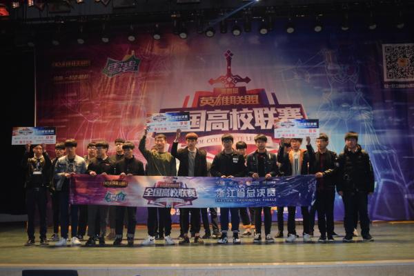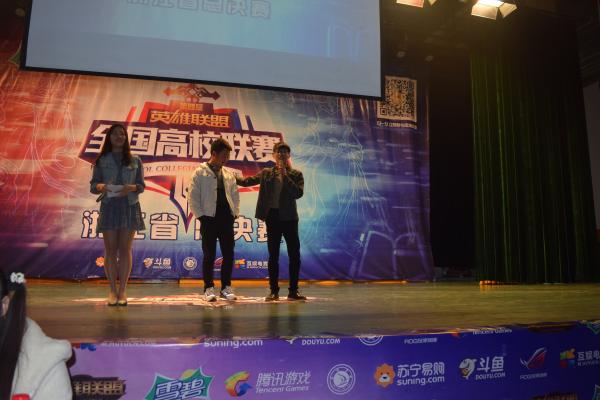 2015年3月27日下午13:30,第四届英雄联盟全国高校联赛,浙江省总决赛在宁波职业技术学院李惠利大剧院举行,来自各大高校的冠军战队展开了正面交锋。本次总决赛的参赛队伍共有七组,分别是宁波职业技术学院的NZY战队、浙江纺织服装职业技术学院的DAY战队、浙江科技大学的CXT战队、浙江医药高等专科学校的CAN战队、绍兴工业XM战队、浙江海运职业技术学院ZimcWhite战队以及宁波大学SKY战队图为:选手比赛过程中 比赛开场由四位游戏英雄cosplayer带来了精彩的模仿秀,让现场的游戏热衷者们一下就点燃了观看的热情,挥舞的荧光棒和手拍也带动起了整个比赛的气氛。在选手调试设备期间,主持人为了调动现场的气氛,与所有观众进行了现场互动小游戏,由主持人一声开始的指令,英雄联盟的牌子便在场内快速地传递开来,主持人转身喊停的瞬间,牌子落到了一位女生的手中,在所有人的欢呼声中,她清唱了一首《十年》,观众们都十分配合为她打起节奏,歌曲结束赢得了观众的热烈掌声和欢呼声。在接下来的两轮游戏中,由应用电子的一位同学带来了《童话》。更有学生会主席团助理谢柏通学长带来舞蹈《青春修炼手册》将现场气氛推至高潮。图为:游戏中