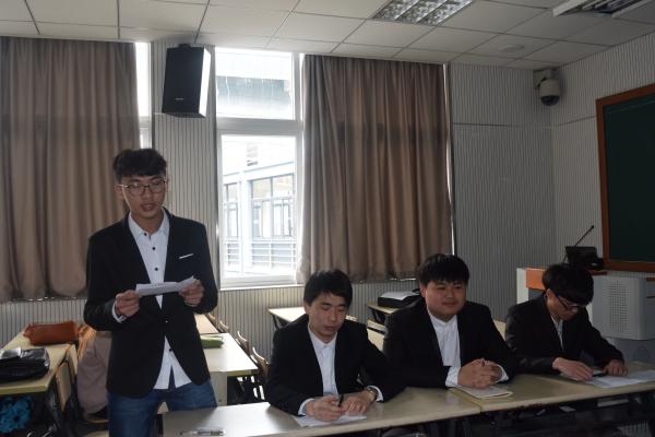 2015年3月30号下午12点,电信学院“明德杯”辩论赛总决赛在精技楼312举行,来自电子3152班的辩论队与物联网3151的辩论队展开了正面交锋。本次辩论赛邀请到了马浩峰学长、沈乐瑶学姐、钱潇学长担任评委。图为:辩论赛中 本次辩论赛的辩题是“大学生校园生活主要靠自律还是靠他律” 双方充满理性色彩的自我介绍后,比赛进入开篇立论环节,双方选手在立论,驳立论,智辩等各个环节中思路清晰,引经据典,字字珠玑,使现场气氛迅速升温。在随后进行的自由辩论环节中,一方咄咄逼人,一方泰然自诺,舌枪唇剑,好不精彩!你有哲理盾,我有事实矛,谁也不甘下风!一方从容自若,口若悬河,另一方却也气定神闲,滔滔不绝。双方各据一势,时有语惊四座!台下片片叫好之声,气氛空前!一个个妙语连珠舌绽莲花的辩论一次次比赛推向高潮。图为:辩论赛中
