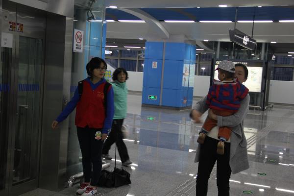 当报名的消息一发出,学生们表现出巨大的热情,报名的积极性高涨。通过选拔,选出五名学生作为此次活动的志愿者。尽管这天天气阴雨蒙蒙,然而这些丝毫没有影响到志愿者们对志愿服务的热忱。他们对服务中的困难积极的向地铁站的工作人员请教,并不断学习,不断提高,尽最大努力将志愿服务做到最好。他们主动热情的问遇到困难的乘客是否需要帮助,让匆忙过往的乘客感到亲切。志愿者服务时的微笑也许不是最美丽的,但是一定是最温暖人心的;也许他们的手不是最漂亮的,但他们为行人指出自己目的地的方向时的手一定是坚定而安定人心的……志愿者们站在地铁站的不同方位,照顾到每个来地铁站的乘客,指导地铁站的行人正确刷卡,帮助他们用地铁售票机买票。热情服务的志愿者们成为地铁站一道道靓丽的风景线。