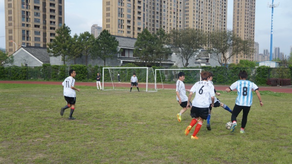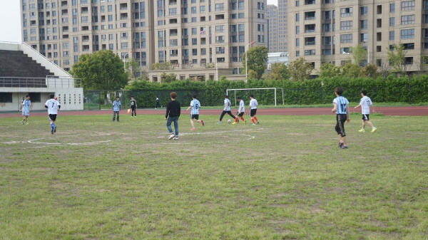 4月11日下午4点于操场举行了一场关于海天学院与服务外包学院的足球赛。比赛还未开始,队员们个个斗志昂扬、蓄势待发,在场的观众殷切期待双方的精彩对决。