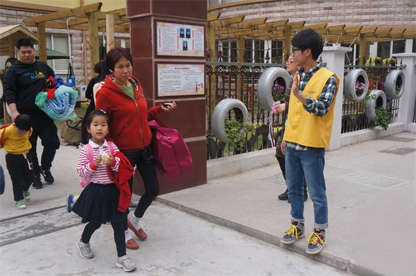 4月15日傍晚,海天学院志愿者部积极组织的志愿者小分队在宁波职业技术学院南门集合,由曹飞队长带领一起前往泰河幼儿园开展护苗活动。到达幼儿园后,志愿者们配合幼儿园园长安排诸多家长等待孩子放学。在志愿者们的维持之下,家长们有序地刷卡带领自己的孩子离开。小朋友们主动和维持秩序的海天学院志愿者挥手说再见,志愿者们也亲切地回应每一个小朋友。