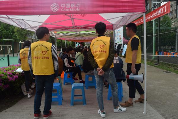 为能够更好的帮助前来我校提前招生的同学们顺利完成此次体质测试,2016年4月16日下午一点整在田径场开展了提前招生志愿者活动。本次活动共有20人参加。图为:志愿者工作中