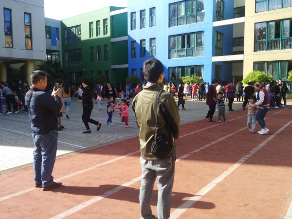 志愿者到达时,幼儿园正在举行亲子活动,小朋友正在和爸爸妈妈一起玩着小游戏,每个人脸上都洋溢着幸福的笑容,时间仿佛静止在这一瞬间。当志愿者们走进校园,便有小朋友过来和志愿者们嬉戏打闹。不一会儿,志愿者们也融进了这欢乐的气氛中。