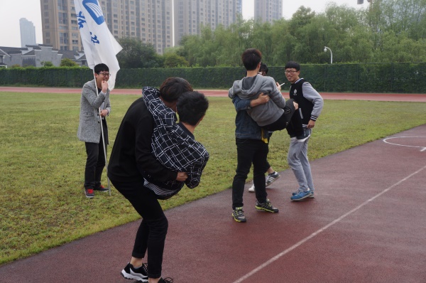 时间过半,我们开始了第二个游戏——抱团。干事们都先围成一个圈,在音乐中慢慢地转了起来。由主席金华剑发号施令,然后干事们根据主席说的数字抱成一团,最终被淘汰的人接受惩罚。惩罚的人抱着赢的人公主抱环着干事们围的圈跑一圈,游戏在欢声笑语中结束了本次的素拓。
