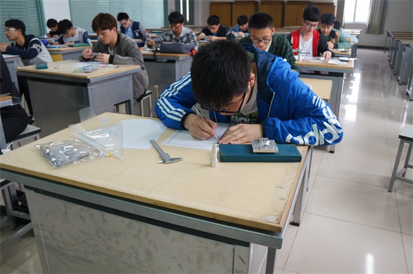同学们在教室里默默的测绘着零件,没有任何抱怨和急躁,为了迎接接下来的测绘比赛,他们都努力做到最好,因为他们都很清楚机会是留个有准备的人的!