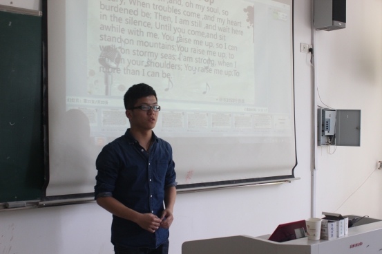此次唱歌复赛比赛模式与朗读比赛模式大体相同。在面对一定人数的观众的条件下,除了少数选手以外,大多数选手都自信响亮地唱出自己所选的曲目。在没有伴奏的情况下,带有感情的演唱。在给予选手建议的时候,叶琼老师特别指出几点:第一,认真对待比赛,充分做好准备,最好做到脱稿;第二,个别选手需要锻炼胆量,做到不怯场;第三,语音语调发音很重要,一口圆润的英语发音会为歌曲加分。据悉,此次通过预赛晋级的选手们经过再次遴选,最终专业组20人,非专业组20人,合计40人进入了半决赛。此次比赛晋级名单已附后,其打印稿已展示于国际学院一楼展示板上。