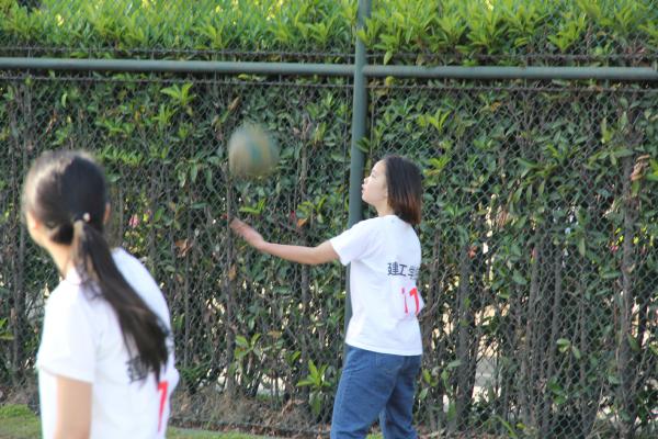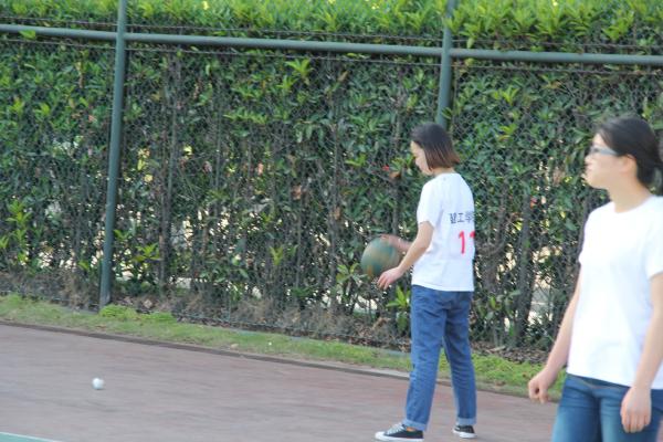 图为:比赛中 开赛之前,各分院的观众聚集在赛场周围翘首以待这场精彩的赛事。正所谓“兵马未动,粮草先行”两个分院的啦啦队很早就做好了准备,一时间在开场的气势上两方势均力敌,难分高下。 随着一声哨响,两方的队员便开始了龙争虎斗,各施绝技。一个个精彩扣球、拦网,双方队员都充分发挥出自己的个人技术及战术配合,让在场的观众都欢呼不已。建工队员采用精湛的吊球技术让对方频频失球,服务外包学院也不甘示弱,她们一次次精彩的拦网技术也让建工学院的队员倍感压力,此场下的拉拉队也喊破嗓子的为自己学院加油,真是一派热闹的场景。每赢一球时都为她们鼓掌而输一球时都会为他们加油提高她们的士气。最终在绝对的优势下我分院赢下了这场比赛。