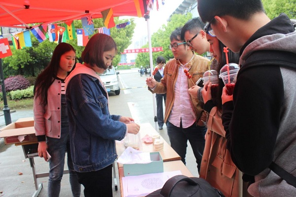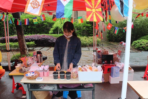 图为:国际学院同学正在售卖美食