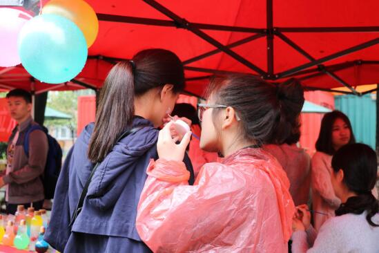 在创意区,“最美证件照”、“变废为宝”、“带你飞”、“指尖上的偶遇”和“指为你疯狂”等百余项活动让宁职学子的创新热情充分迸发出来,纪念品售卖、投篮比赛、象棋比赛、猜谜语比赛让现场成为欢乐的海洋。