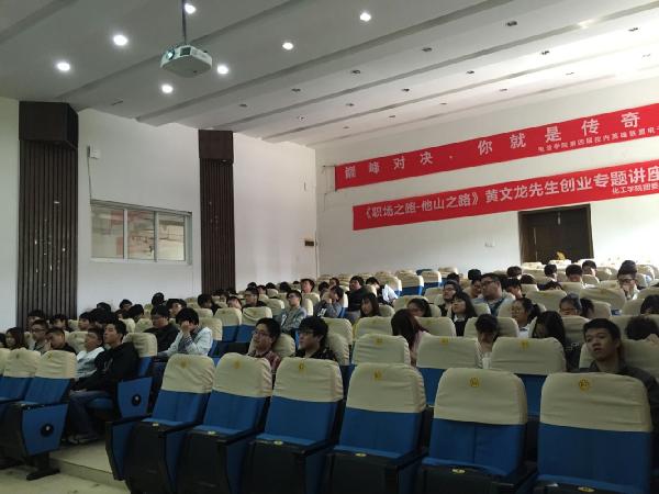 2016年4月28日在东校区1105化工学院举办了关于职场之路,他山之石的讲座。本次主讲人来自化工制造业、阿克苏诺贝尔聚合物化工厂和过氧化物工厂的厂长黄文龙先生。