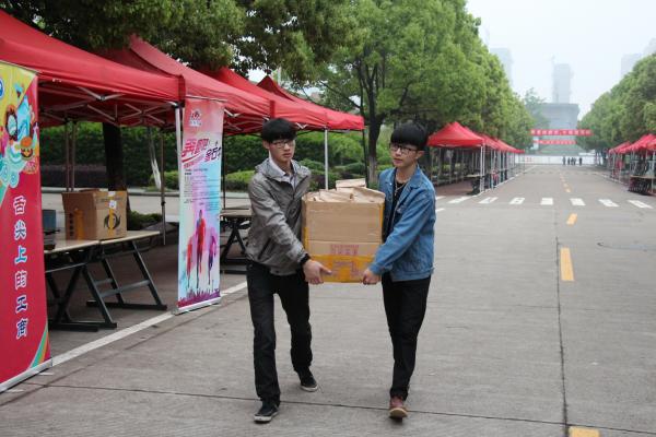 尽管当日子的天气不尽人意,但他们还是卖力地吆喝,用自己最大的热情招来了一个个顾客。下午三点多,随着一天的努力,工商学院为校庆准备的物资也几近售空。最后,大家一起把摊位打扫干净才离开。