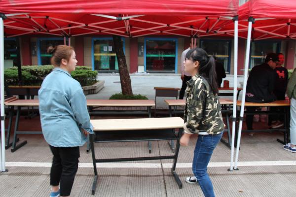图为:我分院正在搬桌子摆摊
