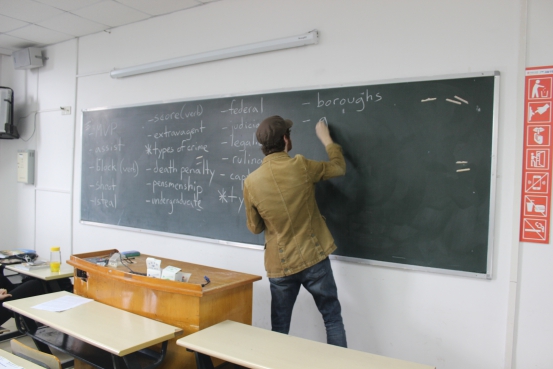 图为:外教杰西给同学们补充新词汇