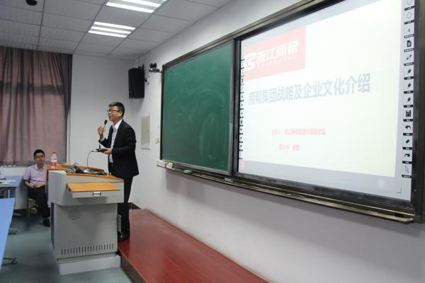 陈总监先对自己所属公司从战略及企业文化方面进行了简单的介绍,让在场的同学了解到浙江商帮集团是一个互联网销售的企业,截止2016年夏季该公司已拥有18家分公司,员工人数已突破2000人。同学们在认真聆听的同时,也积极地回应着陈总监的一些小问题,并提出了一些对公司的疑惑,陈总监也对大家的问题进行详细的解答。