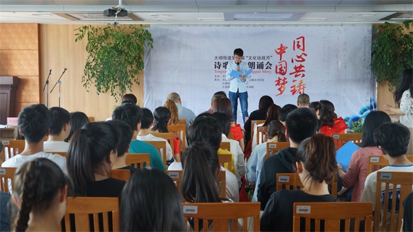图为:朗诵比赛现场 诗歌散文朗诵会主办方为大碶街道党工委,办事处。由大碶街道团工委、大碶街道太白社区、大碶社区卫生服务中心、宁波职业技术学院联合举办。朗诵会评审团:乐松毅、沈慧、李启航、朱伟、王雯。伴随着《那时你老了》朗诵会的角逐正式拉开,各选手激情四射,每一场朗诵都是高潮,一段段斗志昂扬的辞藻,潋起了在场人员心中的中国梦。