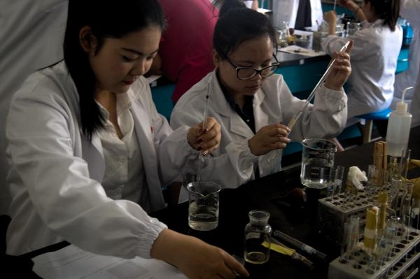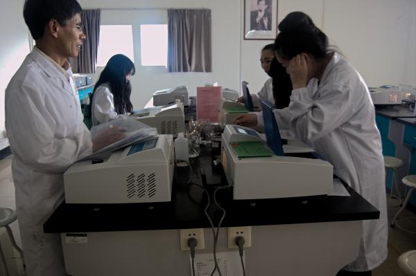 图为:选手进行紫外分光光度计测试