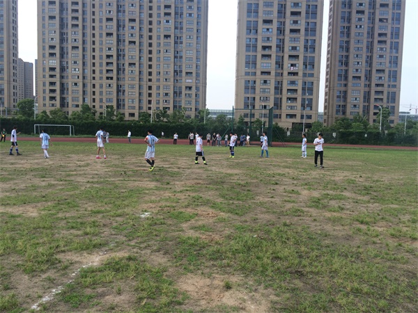 到场的有裁判主要是校足球队的队员以及双方的拉拉队。在比赛开始时双方你来我往,攻防交替,大约于515分时,化工学院首破球门拿下第一粒进球。海天的选手没有因为对手的先拔头筹而泄气,反而更加专注于比赛,在防守时一丝不苟,将球门护的严严实实。