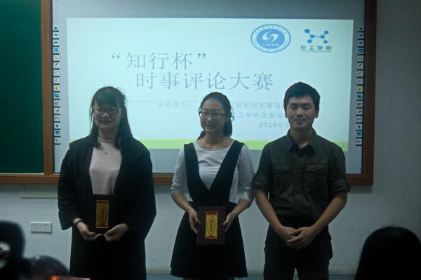 5月12日在东1203教室,化工学院与工商学院共同举办了“知行杯”时事评论大赛。此次比赛有6位化工学生和6位工商学生共同参加,而莅临本次比赛担当评委的有:总院团委马研会副会长管航宇学长,主持人协会副会长彭铭宇以及来自两个学院的3位主席团成员。