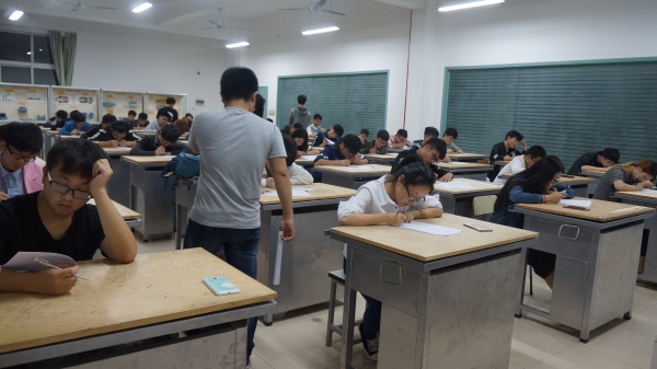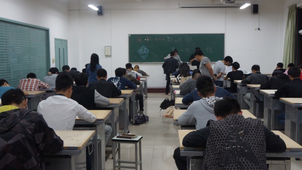 2016年5月12日晚7点半,在海天502进行培训班的第一次阶段考试。团学1507培训班的同学们冒着大雨早早的来到了海天楼,参加培训班第一阶段的考试。本次考试海天学院团委学生会非常的重视,参与本次监考的有海天学院的团委书记张日益,团委副书记孙燕波,学生会主席金华剑,学生会副主席时年,大学生马克思主义中国化理论研究会会长王剑锋和技艺指导中心副主任凌杰。