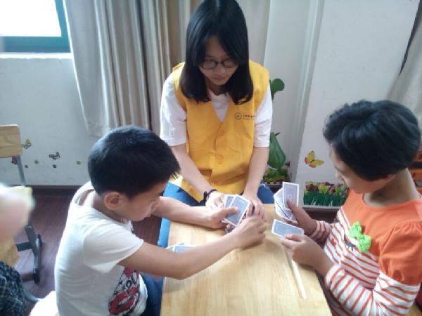 志愿者们满怀热情的抵达阳光学校,在阳光学校老师的分配和指导下,每一位志愿者到指定的教室开始自己的教学工作。活动中,志愿者们各司其职,有讲故事的、教唱歌的,还有教画画的。课后志愿者们带着学生们进行活动,和孩子们和志愿者们打成一片,房间里充满了欢声笑语。在志愿者的帮助带动下,阳光学校的气氛变得活跃起来,志愿者们的到来减轻了学校老师的工作量。