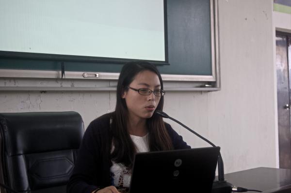 图为:陈碧芳老师向大家介绍环保专业