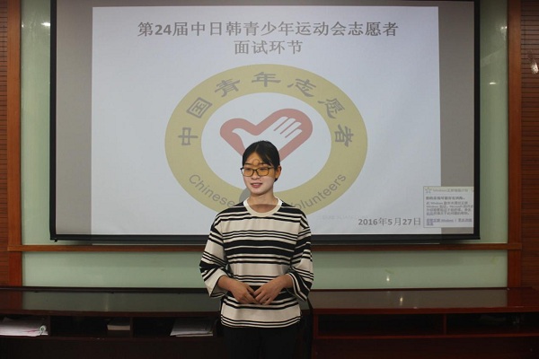 面试采用轮流面试的方式进行。面试者分为通用和韩语两个类别,在做自我介绍之后由评委提问,从而筛选出合格的志愿者。参与面试的同学们紧张而又有条理地准备着,体现了对此次面试的重视。在面试中,同学们都纷纷表露出了对参加中日韩青少年运动会志愿者活动的渴望,希望从中锻炼自我,提高能力,丰富假期生活。而面对评委老师关于个人优势、面对挫折时的解决办法、志愿者活动经历等问题,面试者也都给出了相应的答案,从中折射出了同学们积极的态度和坚定的决心。