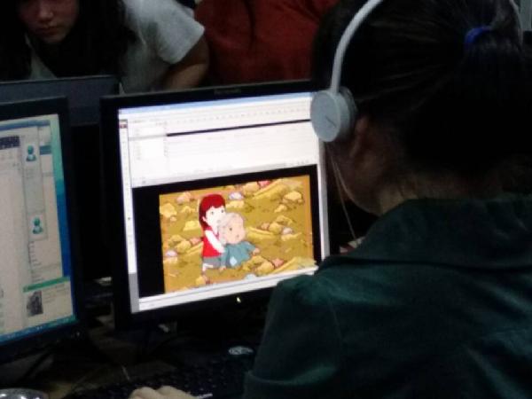 图为:同学观看动漫设计