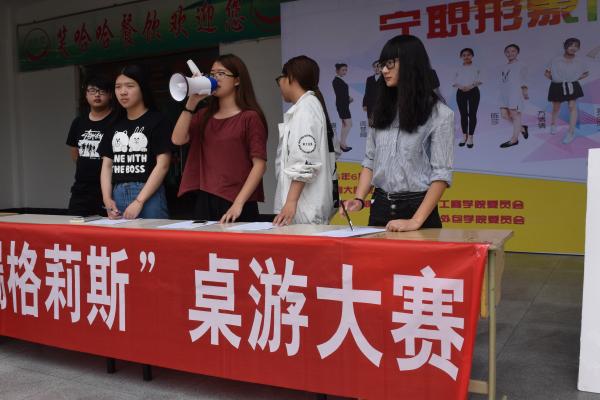 为丰富校园文化生活,加强同学间的沟通与交流,增进彼此之间的信任和友谊,使学生学会在娱乐中学习,提高逻辑思维能力和判断能力。 6月2日中午11点,电信学院团委学生会在食堂门口进行“瑞格莉斯”桌游大赛宣传及报名。