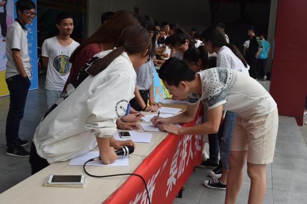 图为:报名中桌游是一种集益智交友为一体的桌上游戏,融入不同的游戏背景从而为玩家提供各种不同的角色,让玩家从游戏中锻炼自己的判断力、决断力以及谋略,同时能在游戏过程中加强与同伴的交流。宣传的干事表明:本次电信学院的“瑞格莉斯桌游”比赛将于2016年6月4号开始,早上是体验时间,正式的角逐将在中午开展。本次“瑞格莉斯桌游”包括:谁是卧底、狼人杀、五子棋等。并且在报名当天,还在思源广场上开展了“体验服”,方便让前来报名的同学们更好的了解比赛的内容、掌握比赛的规则。在现场,来报名的同学络绎不绝,踊跃报名,都期待着在桌子上大展雄风。