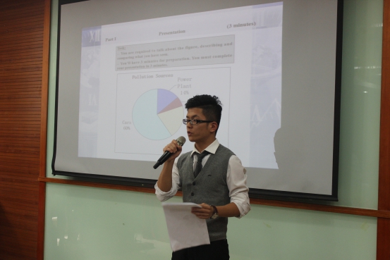 与前几次英语风采大赛决赛相同,本次英语风采大赛之演讲比赛更是进一步在各个方面对选手们提出了更高的要求。选手们通过抽签取得自己演讲题目,并在候场室进行准备。题目分成两个部分,第一个部分是图表题,要求选手对图标进行相应的描述,并阐述其背后的原因;第二个部分是要求选手在阅读题目后回答Komal外教的问题。这要求选手有相当高的英语口语水平和问题分析能力,同时需要相应的应变能力。作为出席决赛的嘉宾,杨林生院长说道:“英语是我们国际学院的特色,风采大赛对英语学习并提高有很大的作用。”除选手的精彩演讲外,本次还有余康等同学带来了精彩的朗诵和歌唱表演。最终,商英3153班叶得鑫等同学取得佳绩。