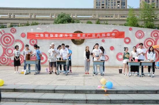 本次活动共有八支参赛队伍,分别来自八大分院,他们分别是:电信学院:电信小太阳队,艺术学院:艺术家队,建工学院:建工特色环保小分队,海天学院:PTE队,服务外包学院:青春外包队,国际学院:小太阳团队,工商学院:工商新希望队,化工学院:环境大队。各队伍在游戏积分赛两两分组进行pk,一组中分数高的一队,将直接进入我们的最终环节。比赛的游戏规则是,每支队伍选出两人参加“海底捞月”,两人参加“你划我猜”。其中“海底捞月”为,一人背身扔球,一人在其背后用手接球,并对所接到的标有不同垃圾名的球进行分类,对一个得一分,不对不得分,每只参赛队伍共10个球;如果球落地,将不计入分数。最后,创意的DIY,剩下的四支队伍将在三十分钟内通过选手们的齐心协力利用各种废弃物制作出一件以环保为主题的“艺术品”,最后各位评委以及大众评审将通过作品的美观性、实用性以及团队合作能力进行评比。