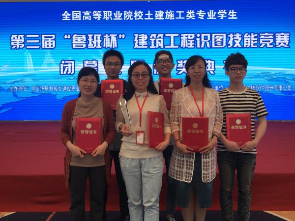 在6月4日全国高职院校土建施工类专业学生第三届“鲁班杯”建筑工程识图技能竞赛中,我校建工学院学生在师伟、黄莉丽、周莉莉3位指导教师的带领下,在184个参赛院校中脱颖而出,以第3名的成绩获得了团体特等奖,且被大赛组委会授予了优秀组织奖;其中叶海武、林丹峰同学在此次大赛中获得个人特等奖,吴寒冰同学获得一等奖,3位指导教师均获得优秀指导教师奖。