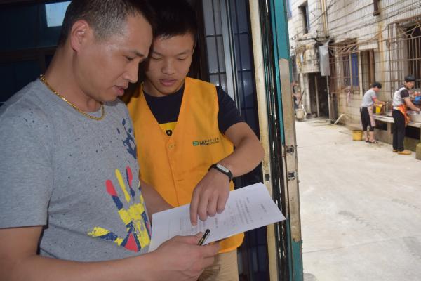 图:志愿者为居民介绍此次问卷调查活动中