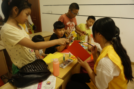 接下来,志愿者开始给小朋友讲了关于父亲节的课外知识。小朋友们在底下听得很认真,积极地志愿者进行互动。第二节课,小朋友和志愿者一起动手制作父亲节贺卡,孩子们亲手在贺卡上写上对父亲想说的心里话,表达对父亲的美好祝愿。
